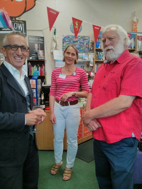 Mel (centre) and customers celebrating Griffin Books 2nd birthday