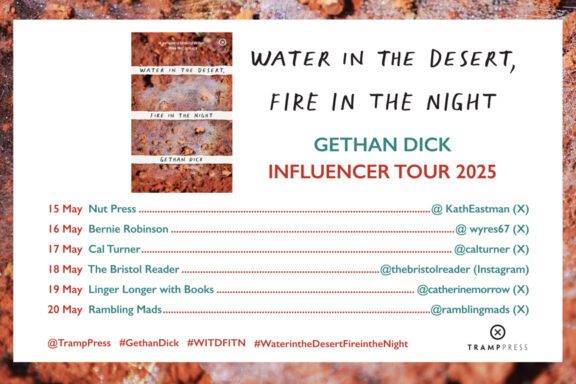 Gethan Dick’s novel Water in the Desert Fire in the Night is a story of hope and resilience which sees disparate neighbours band together after most of London (and the world’s population) is wiped out.. Here is a novel about hope, wolves, companionship and resilience, hunger and gold. It’s about an underachieving millennial, a retired midwife and a charismatic Dubliner…
